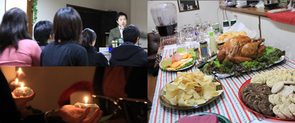 当日は、会社帰りの人が集まり、クリスマスの話を聞き、キャンドルを手に賛美歌を歌いました。
